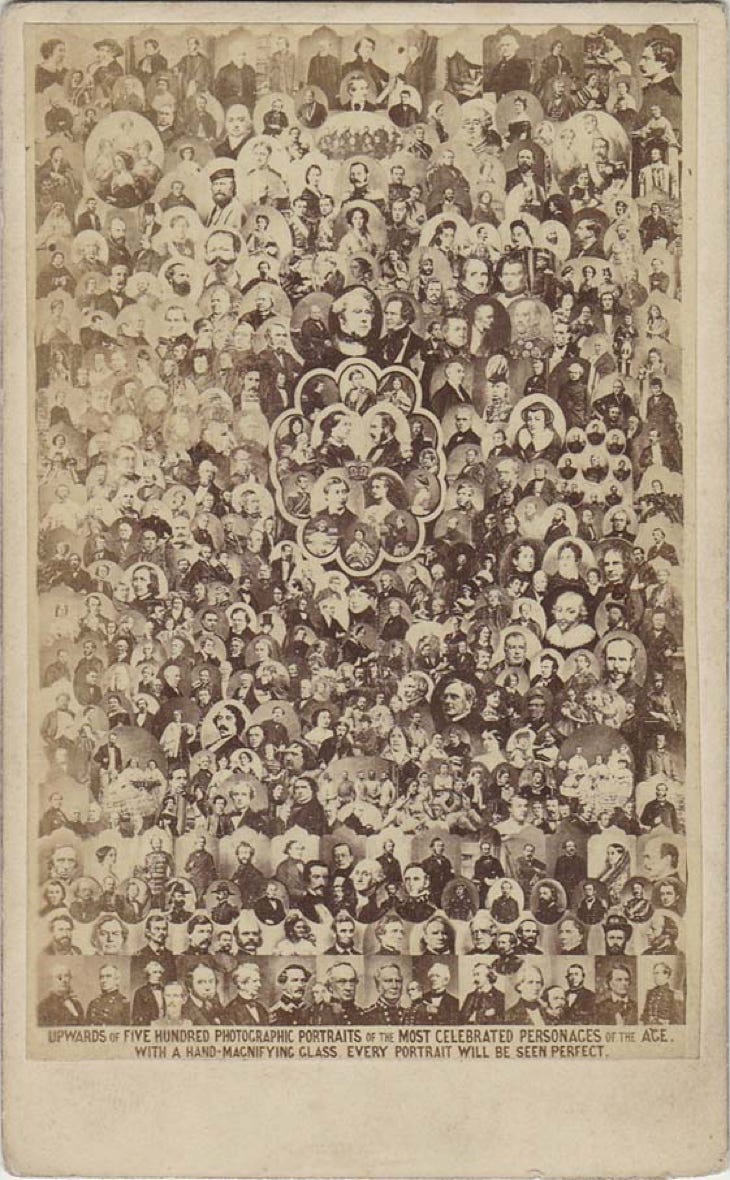 Upwards of five hundred photographic portraits of the most celebrated personages of the age. With a hand-magnifying glass every portrait will be seen perfect.